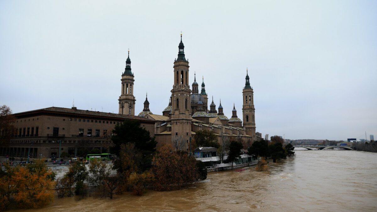 El río Ebro horas antes de la crecida, en la zona de la Basílica del Pilar | Juan Carlos Lucas (Europa Press)
