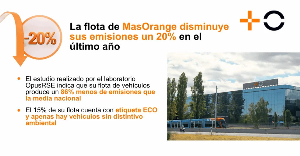 El estudio, llevado a cabo por el laboratorio español OPUS RSE -especializado en la teledetección de contaminantes derivados del tráfico rodado- confirma que los vehículos de MasOrange presentan unas emisiones muy por debajo de la media nacional y mejoran, además, notablemente los resultados del año anterior.