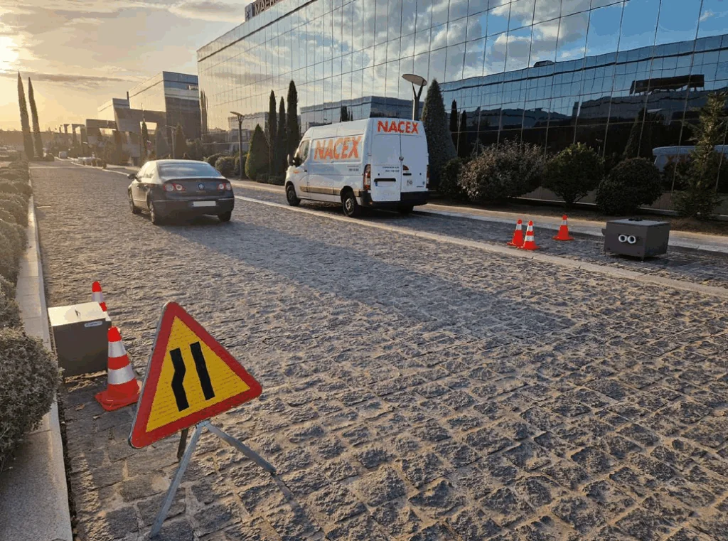 Despliegue de uno de los dos sensores RSD en una de las entradas del parque empresarial La Finca, donde se encuentra la sede de MasOrange.