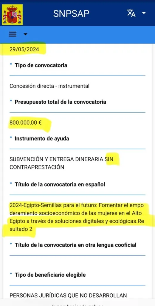 Estas tres partidas se suman a la ingente cantidad de dinero público que ha tenido destino en Egipto con la coartada de la cooperación internacional para el desarrollo. Decenas de subvenciones dinerarias sin contraprestación han sido enviadas a Egipto bajo las más disparatadas excusas. Por ejemplo, en 2024, en menos de diez días más de tres millones de euros fueron enviados por Aecid a Egipto en tres subvenciones dinerarias sin contraprestación. La excusa usada fue «el empoderamiento socioeconómico de las mujeres del alto Egipto con soluciones digitales y ecológicas» (en tres partidas: una de 1,39 millones de euros, otra de 800.000 y una de 930.000). Reflexionen sobre los conceptos: «soluciones digitales y ecológicas».