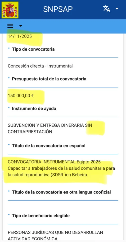 -14 de noviembre de 2025. 150.000 euros. Subvención dineraria sin contraprestación otorgada por Aecid a un ente egipcio para «capacitar a trabajadores de la salud comunitaria para la salud reproductiva en Beheira». No creo que sea el único al que se le hayan encendido todas las alarmas al leer «salud reproductiva». Somos conscientes, o deberíamos serlo, de lo que entiende este Ejecutivo por salud reproductiva, y todo nos suena a aborto.