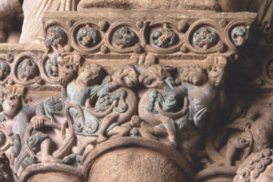 En este fuste, el Maestro Mateo refleja la necesidad de seguir a alguien de más autoridad en nuestro camino al Misterio. ¿A quién hay que seguir? ¿Quién es ese guía? Y Mateo aclara. Aquel con el que rejuveneces haciendo el camino.
