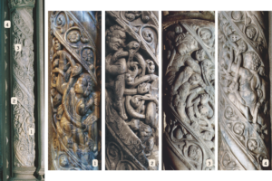 El Maestro resalta la resistencia que tenemos a la obediencia, poniendo en el capitel de esta columna la imagen de dos asnos a los que unos jóvenes intentan guiar.