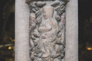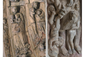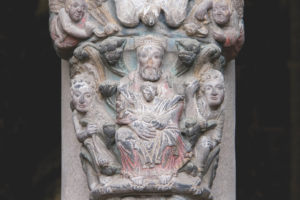 Diciendo “sí” al vínculo que Cristo establece contigo, ya no estás solo, sino dentro de una comunidad. De hecho, aferrados por el bautismo, Cristo nos ha puesto juntos como miembros de su cuerpo, nos hacemos amigos, nos convertimos en uno. La Iglesia es, por gracia, el lugar donde se realiza el milagro tan deseado e imposible: la unidad entre los hombres. Porque Cristo quiere salvarnos a todos, con su sacrificio en la cruz nos ha atraído a todos hacia sí –al pueblo de la Antigua Alianza y al de la Nueva– reconciliándonos como hijos de Dios, y por eso haciéndonos hermanos. Todos estamos llamados a la comunión con Él y entre nosotros, ya que el mismo Dios es comunión de personas, como puede verse en el capitel de la Trinidad.