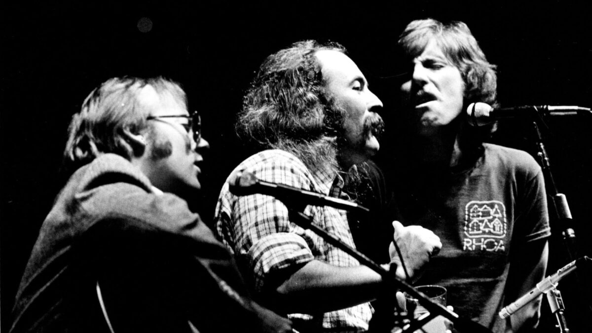 David Crosby, Stephen Stills y Graham Nash durante un concierto en los 70. | Tom Sweeney (Europa Press)