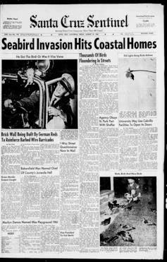En agosto de 1961, miles de aves marinas enloquecidas sobrevolaban las costas de la bahía de Monterey, California. El extraño suceso sirvió de inspiración para que Alfred Hitchcock, que veraneaba en la zona, ideara el guión de su famosa película Los pájaros (1963), en la que bandadas de aves frenéticas atacan a los residentes de un pueblecito costero, Bodega Bay.