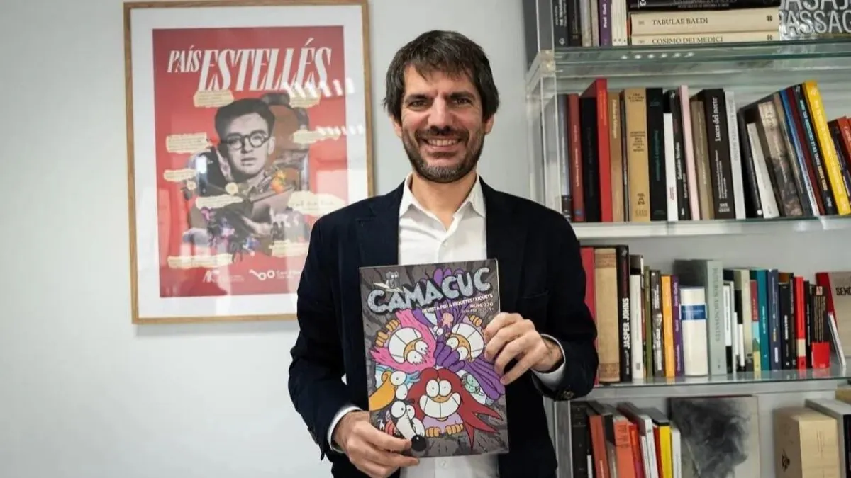 El ministro de Cultura, Ernest Urtasun, posa con un ejemplar de Camacuc, una revista infantil en valenciano publicada por la editorial homónima desde el año 1984. | X