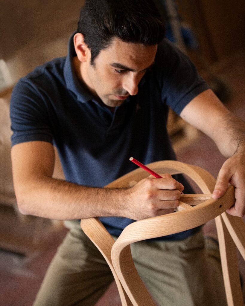 R.- En mis inicios, el proceso era completamente artesanal. Tenía un taller en el centro de Madrid donde pasaba horas doblando, rompiendo y aprendiendo de la madera. Cada pieza representaba un aprendizaje constante, desde el curvado con vapor hasta los acabados naturales. Con el tiempo, mi método ha evolucionado: ahora incorporo tecnología como modelado 3D y máquinas de cinco ejes para lograr mayor control y eficiencia. Hoy resulta absurdo no aprovechar la tecnología en la ebanistería; la artesanía también es tecnología, solo que de otra época. Usar maquinaria moderna no resta valor a lo que fabrico, al contrario, amplía enormemente lo que puedo imaginar y materializar. La tecnoartesanía es un campo fascinante que aún está por descubrir.