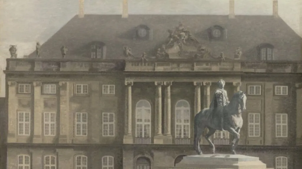 Cuando abandona el interior y se enfrenta al paisaje o a la ciudad, el resultado no es muy diferente. Sus vistas de Copenhague aparecen vacías, despojadas de vida. En Plaza de Amalienborg, Copenhague (1896), por ejemplo, la arquitectura se impone como un espacio casi abstracto, deshabitado, donde el tiempo parece haberse detenido. Incluso en sus paisajes rurales, como Lluvia con sol, lago Gentofte (1903), la naturaleza aparece contenida, silenciosa, sin dramatismo.