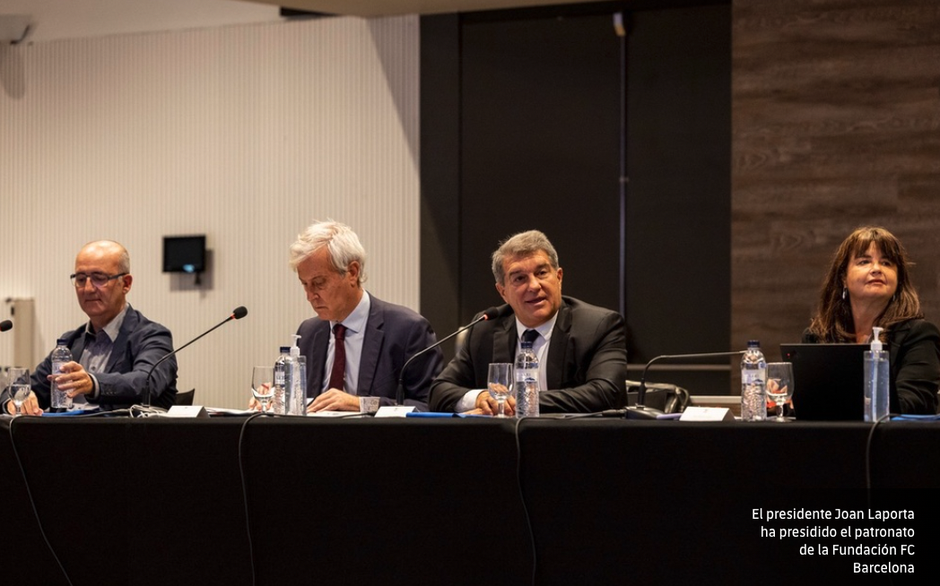 Joan Laporta, presidente del FC Barcelona, con el patronato de la Fundación. | Fundació Barça