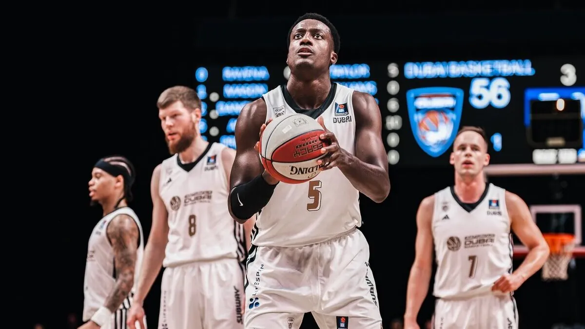 Awudu Abass se dispone a lanzar un tiro libre durante un partido del Dubái BC. | X (Dubái BC)