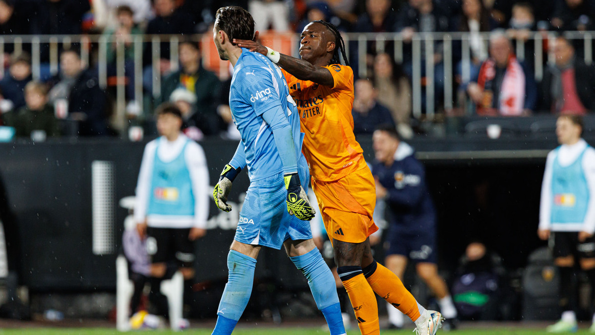 La expulsión del delantero madridista se produjo en el minuto 79 del partido de LaLiga EA Sports del pasado 3 de enero en Mestalla (1-2), cuando el conjunto de Carlo Ancelotti todavía marchaba por detrás en el marcador; tras una acción de ataque, golpeó al portero rival, el macedonio Stole Dimitrievski, en la cabeza, y después de ver la roja directa tuvo que ser sujetado mientras protestaba airadamente. Por ello, el Comité de Disciplina le impuso dos partidos de sanción.