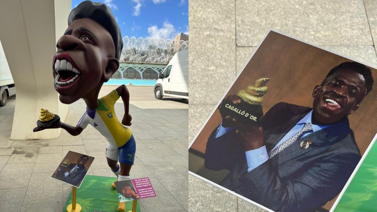 El artista Víctor Navarro, autor de la Falla de Denia – Brasil, ha presentado este año un ninot de Vinicius en el que se ceba con el brasileño y satiriza con su Balón de Oro frustrado, convirtiendo al extremo del Real Madrid en el «Cagalló D’Or». Algo que traducido vendría a ser «la moñiga de oro».