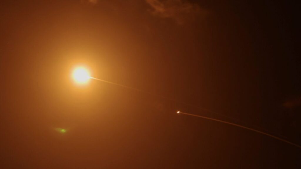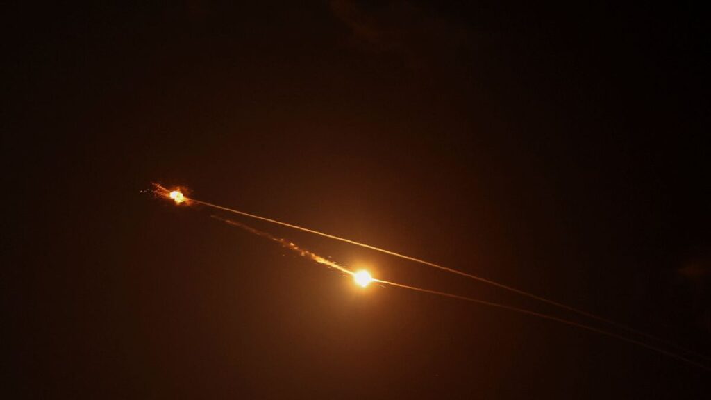 Imagen de la defensa aérea israelí interceptando dos misiles iraníes