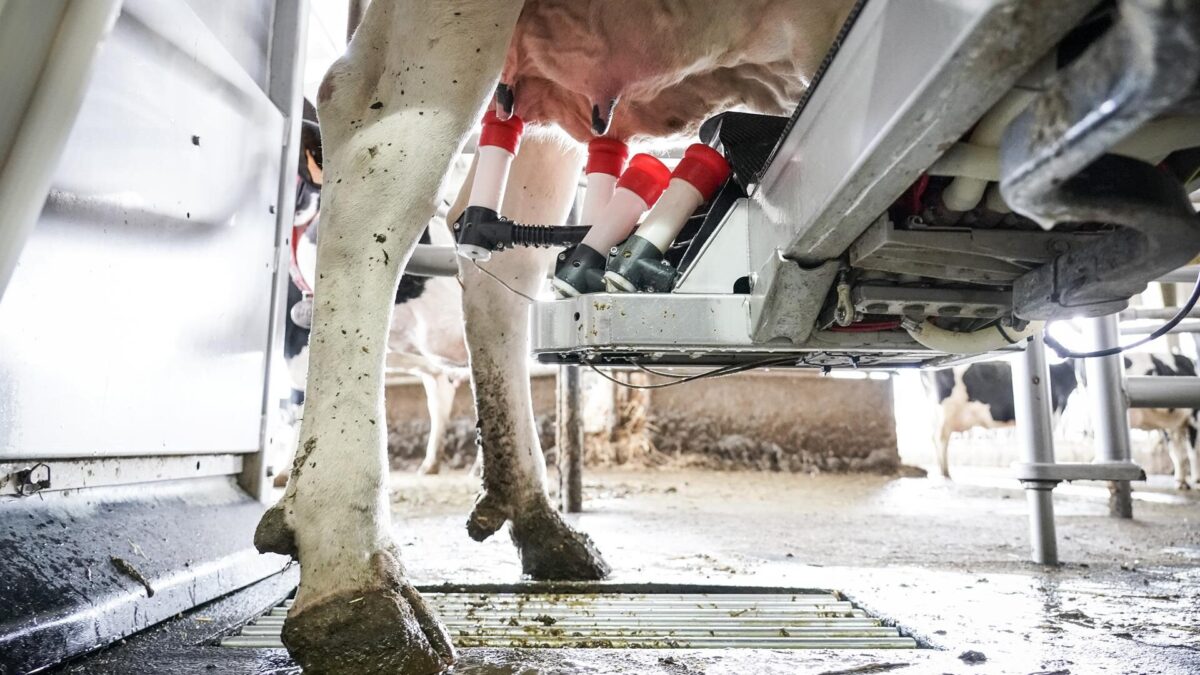 Una máquina de ordeño ordeña a una vaca. | Iñaki Berasaluce (EP)