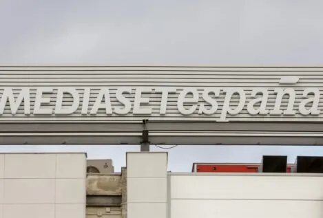 Cartel Mediaset España en la Sede de Telecinco, en Madrid. | Europa Press