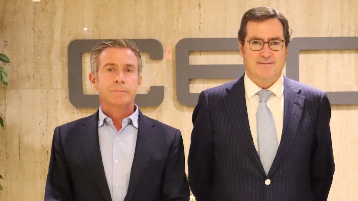 El secretario general de FECE, Alfredo Gosálvez, con el presidente de CEOE, Antonio Garamendi. | FECE.