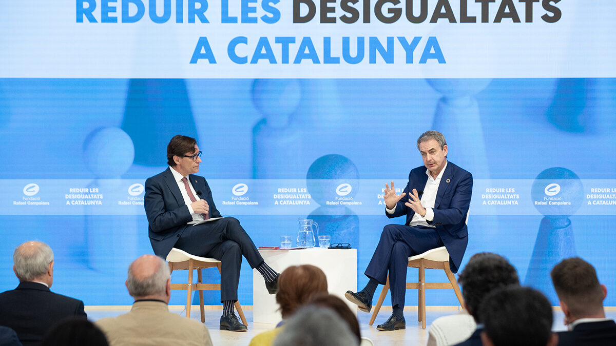 El primer secretario del PSC, Salvador Illa, y el expresidente del Gobierno, José Luis Rodríguez Zapatero, durante la jornada “Reduir les desigualtats a Catalunya”, en 2022. | David Zorrakino / Europa Press / ContactoPhoto