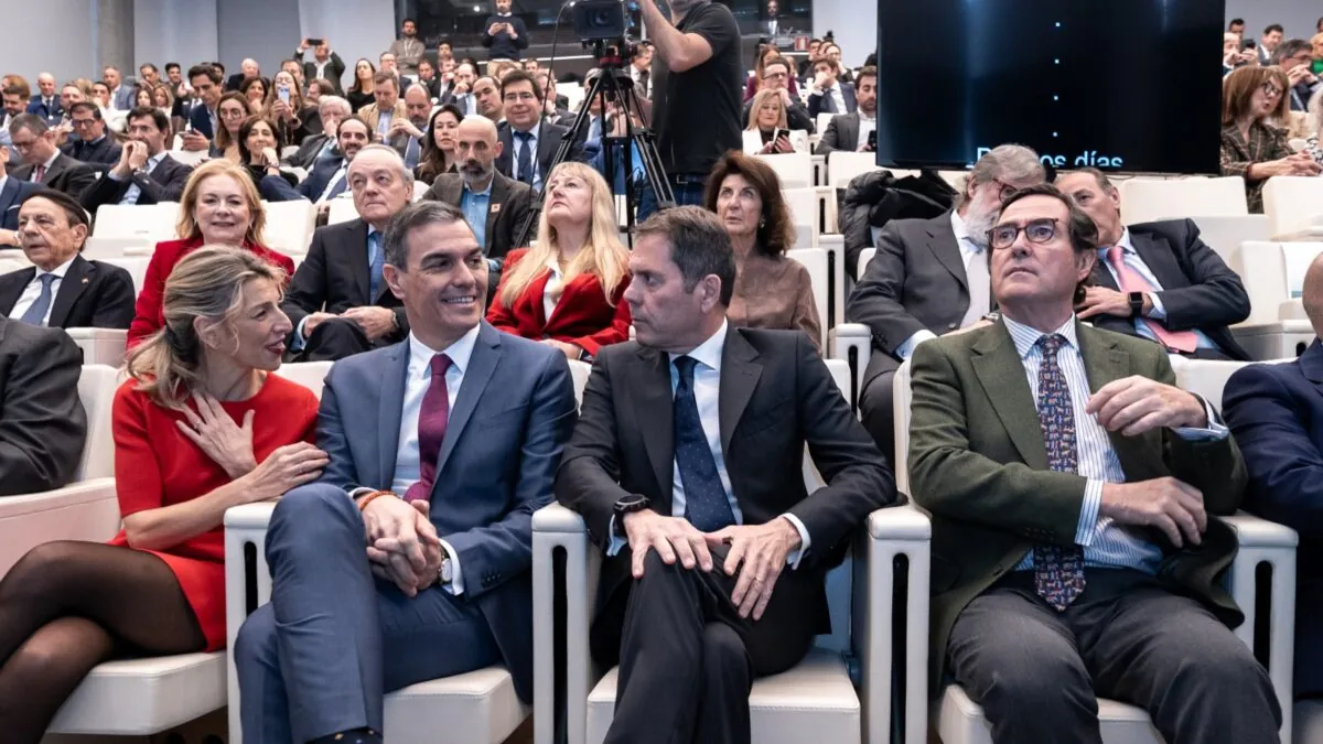 Yolanda Díaz, Pedro Sánchez, Gerardo Cuerva y Antonio Garamendi. | THE OBJECTIVE