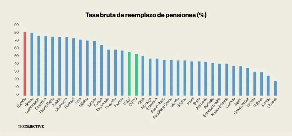 La tasa de reemplazo en España es aproximadamente del 80%, frente al 50 o 60% de la media de la UE y la OCDE