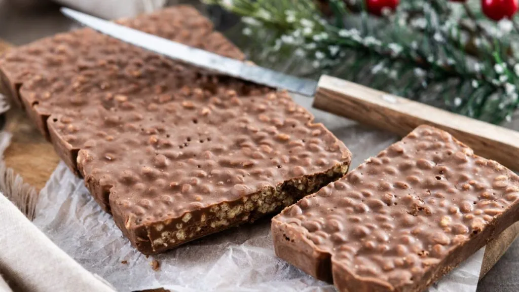 - Turrón praliné con galleta, 1,95 €, con textura tipo bombón.