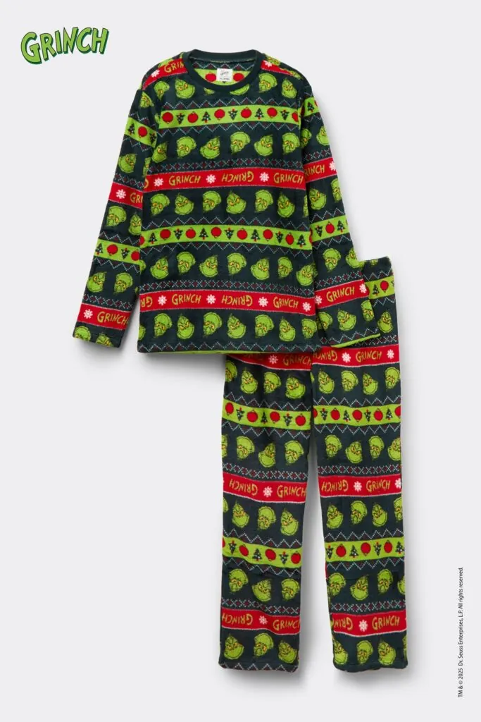 Tezenis apuesta por un pijama más premium, con pijama largo de forro polar ligero por 29,99 euros, disponible tanto para hombre como para mujer. Este conjunto destaca por su tejido suave y cálido, ideal para quienes buscan una prenda de alta calidad para las frías noches de diciembre, manteniendo el estampado y el estilo icónico del Grinch.