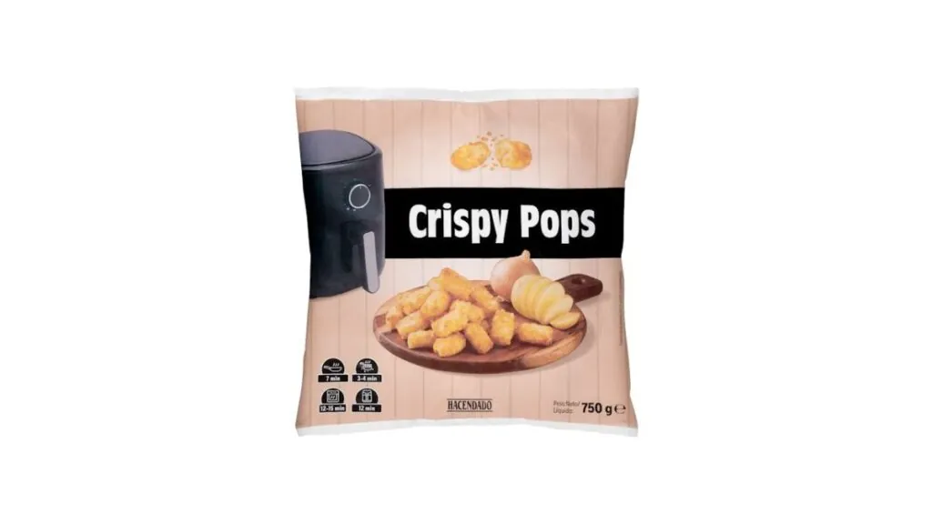En este caso, el artículo que saca a la venta Mercadona es un congelado, unas patatas prefritas, denominadas Crispy Pops. Están pensadas para que en poco tiempo puedan ser consumidas sin nada de esfuerzo. La idea es que se hagan en el Airfryer y se tarde aproximadamente unos 12 minutos precalentada a 200 grados y dándole la vuelta a la mitad del tiempo. También hay otras opciones como hacerlas en el horno, serían entre 12 y 15 minutos a la misma temperatura. Otras formas de hacerlo sería en sartén en 7 minutos o, menos saludable, freidora en 3-4 minutos.