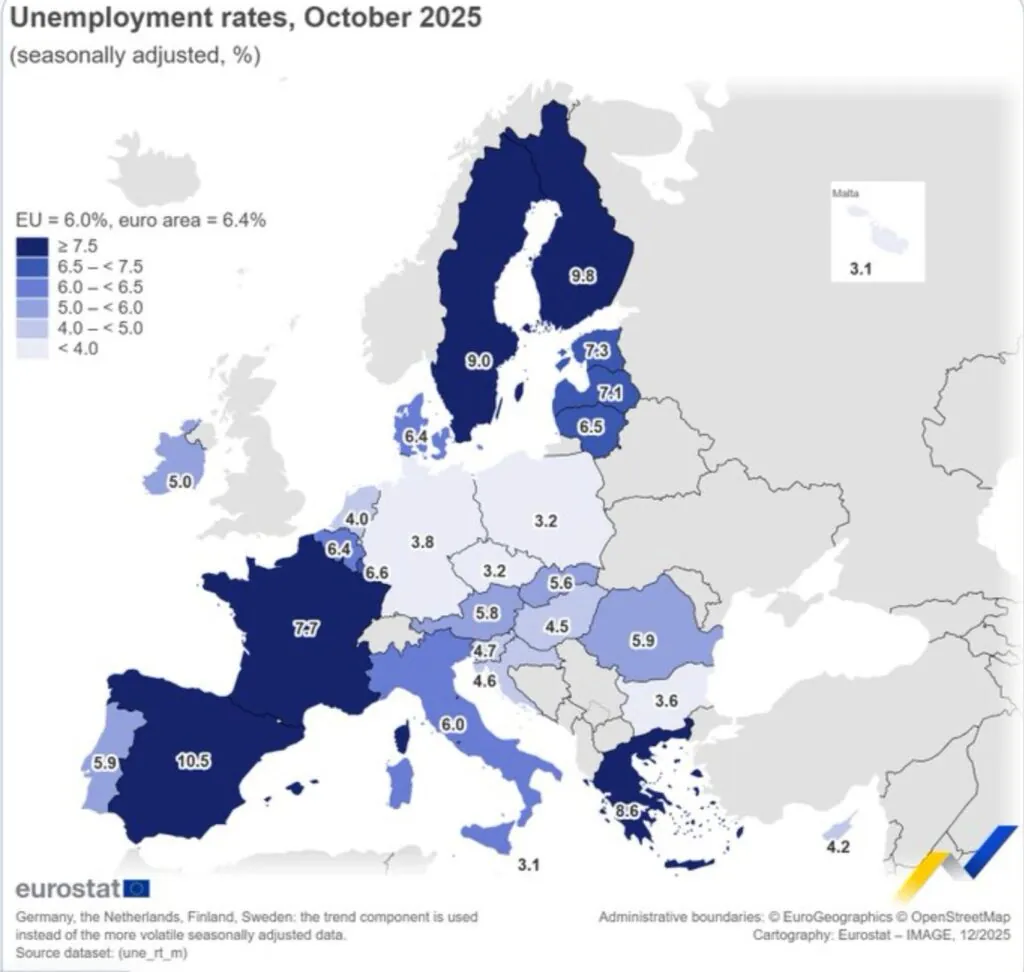 Pero la reforma laboral no solo ha reinterpretado el tipo de contratación (España registró en el mes de octubre 750.000 fijos discontinuos). También ha tenido efecto en el elevado número de parados, prácticamente el doble que en Portugal, como muestra la última estadística de Eurostat. «Lo cierto es que el comportamiento de nuestro mercado laboral sigue arrojando datos de difícil comprensión. Como este del mes de noviembre, en el que, según los registros oficiales, se llegaron a firmar hasta 1.296.203, lo que supone una bajada de 5.279 (-0,41%) sobre el mismo mes del año 2024. Sin embargo, el paro apenas ha descendido en 18.805 personas en relación con el mes anterior. Y, en valores relativos, este descenso del paro ha sido de un 0,77%. De ahí que, el encaje de esta ecuación lleve a reflexionar a USO, y en su análisis se pregunte, por tanto: ¿Cuánto duran estos contratos, si la bajada del desempleo es tan exigua, y dónde están las personas que han sido contratadas?».