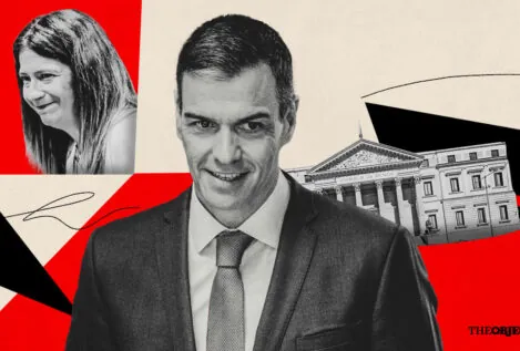 Pedro Sánchez y una bandera de España. | Ilustración de Alejandra Svriz
