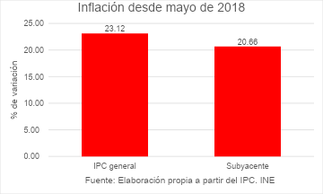 Todo ello, hace que desde que gobierna Sánchez la inflación haya subido un 23,12%, mientras que la subyacente, durante su mandato, lo haya hecho un 20,66%.