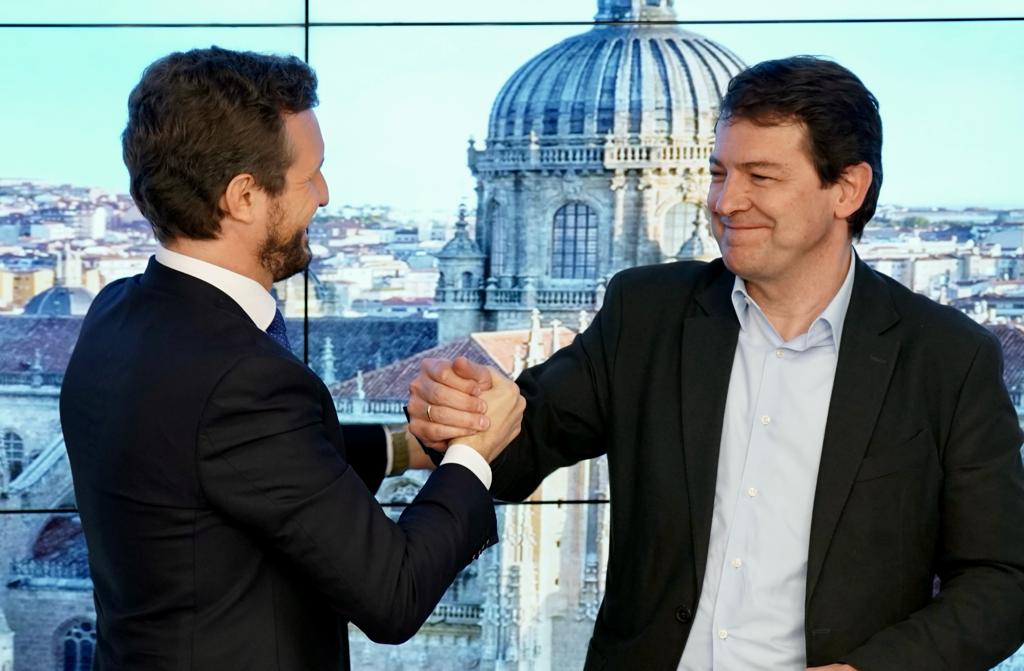 Pablo Casado y Alfonso Fernández Mañueco tras las elecciones del 13-F | Tarek (PP)