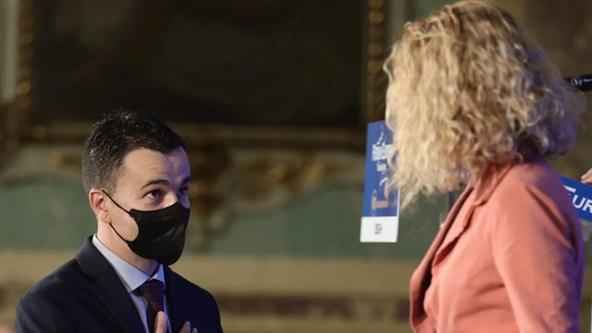 El portavoz del Grupo Socialista, Héctor Gómez, saluda a la presidenta del Congreso, Meritxell Batet. | Europa Press