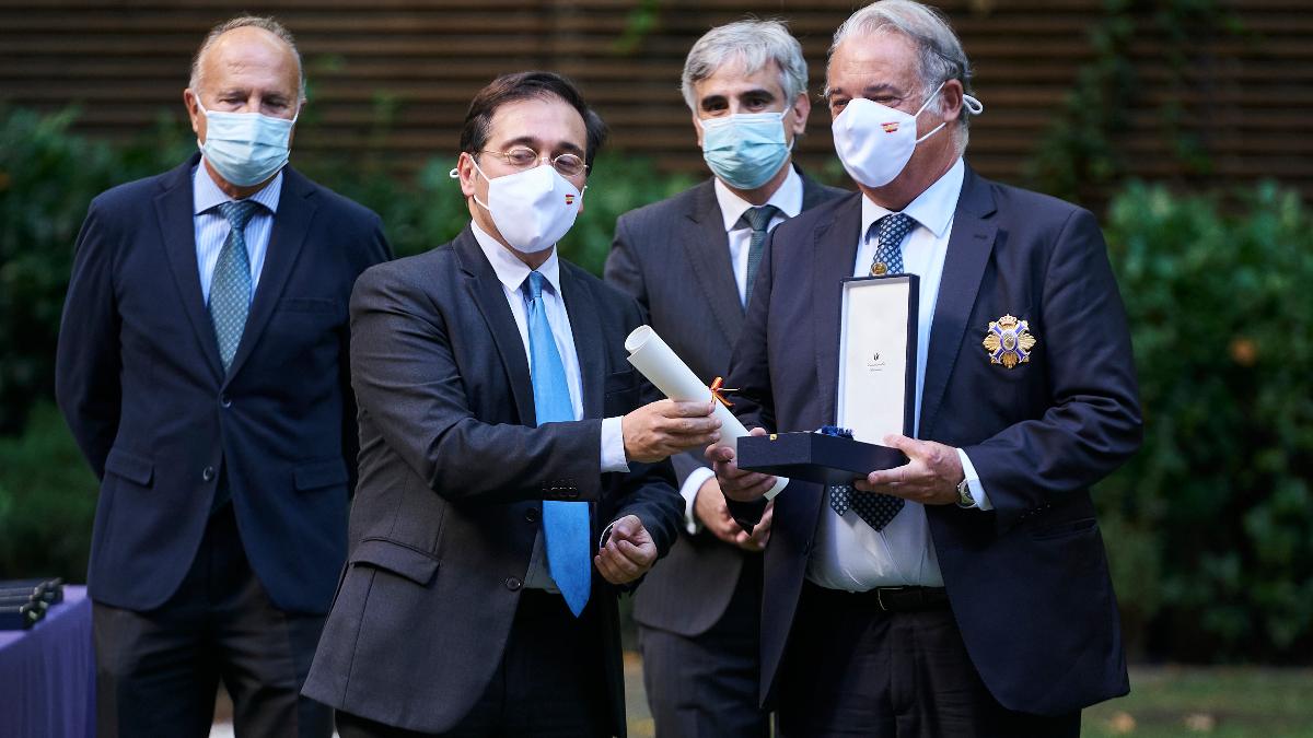 José Manuel Albares y Gabriel Ferrán el día de la condecoración a este último por la evacuación de Kabul. | Foto: A.Pérez Meca (EP)