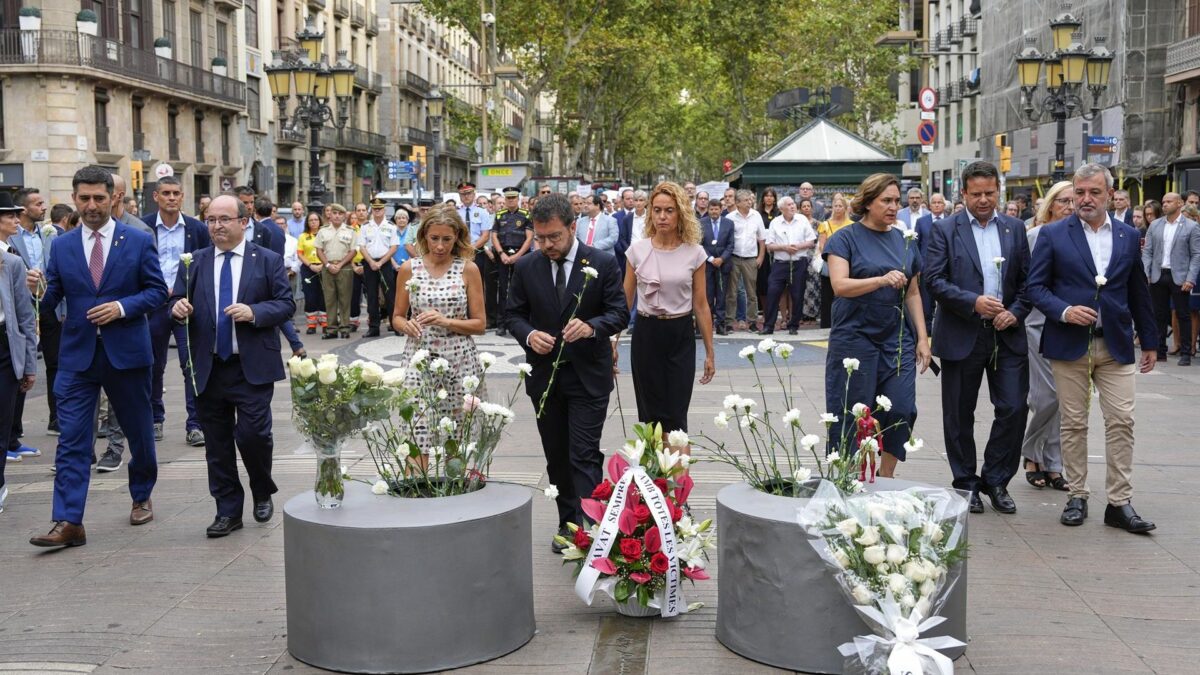 Varios de los asistentes al acto de homenaje en el quinto aniversario se los atentados de Barcelona. | Alejandro García (EP)