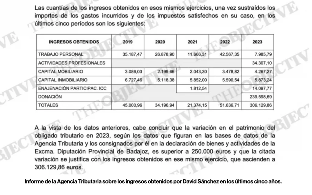 Esta baja médica de Sánchez -recuerdan miembros de la Diputación a este medio- sorprende que se haya presentado en la Diputación de Badajoz en un momento en el que, según las investigaciones fiscales de la UCO de las que informó THE OBJECTIVE, David Sánchez Pérez-Castejón declaró a Hacienda en 2023 como autónomo, manifestando el pago de pago del impuesto de actividades económicas.