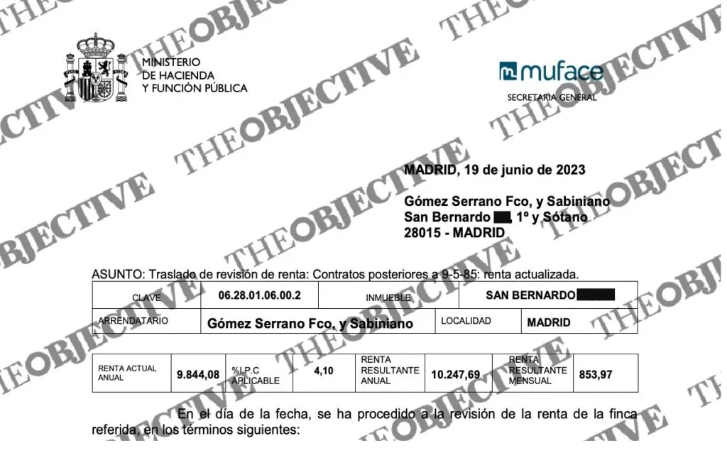 Las dos viviendas y el local, que en conjunto suman cerca de 700 metros cuadrados en pleno centro de Madrid, han sido alquilados a precios muy por debajo del valor de mercado. La mutualidad pública propietaria de estos inmuebles ha dado instrucciones internas para examinar a fondo estos contratos y los documentos que los respaldan, según ha podido confirmar THE OBJECTIVE a través de fuentes del organismo. La Subdirección General de Patrimonio de Muface es el departamento que dispone de toda la documentación al respecto.