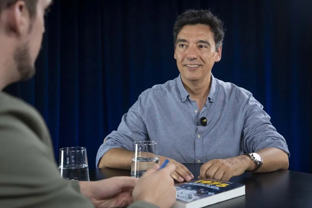 En el último suspiro de la conversación, Jorge Vilches (Madrid, 1967) me cuenta que es cinturón negro de karate. «Una pena», me lamenté, no haber comenzado por ahí la charla con este politólogo, profesor e historiador madrileño, colaborador de THE OBJECTIVE. Vilches acaba de publicar 1975. Esta España viva, esta España muerta, una mirada al pasado del país: cómo era, cómo respiraba o cómo boqueaba aquel régimen. Cuando Franco estaba a punto de morir en la cama, ¿era España un país gris? ¿Eran los españolitos de entonces gente sin nivel? ¿Qué oposición real tuvo Franco? ¿Y qué queda hoy del franquismo?