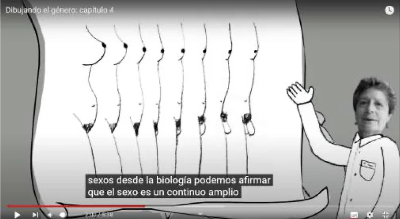 Este material didáctico catalán se apoya en vídeos que se proyectan en horario escolar. En uno de ellos, se muestra la transición de un cuerpo femenino hacia uno masculino, de una vulva y unos pechos a un pene y un pectoral, acompañada de una voz que sostiene que «desde la biología podemos afirmar que el sexo es un continuo amplio». El vídeo es tan explícito que YouTube incluye una advertencia para los usuarios que se decidan a verlo: «Este vídeo puede ser inadecuado para algunos usuarios». Sin embargo, la Generalitat lo considera apropiado para niños de entre seis y 12 años.