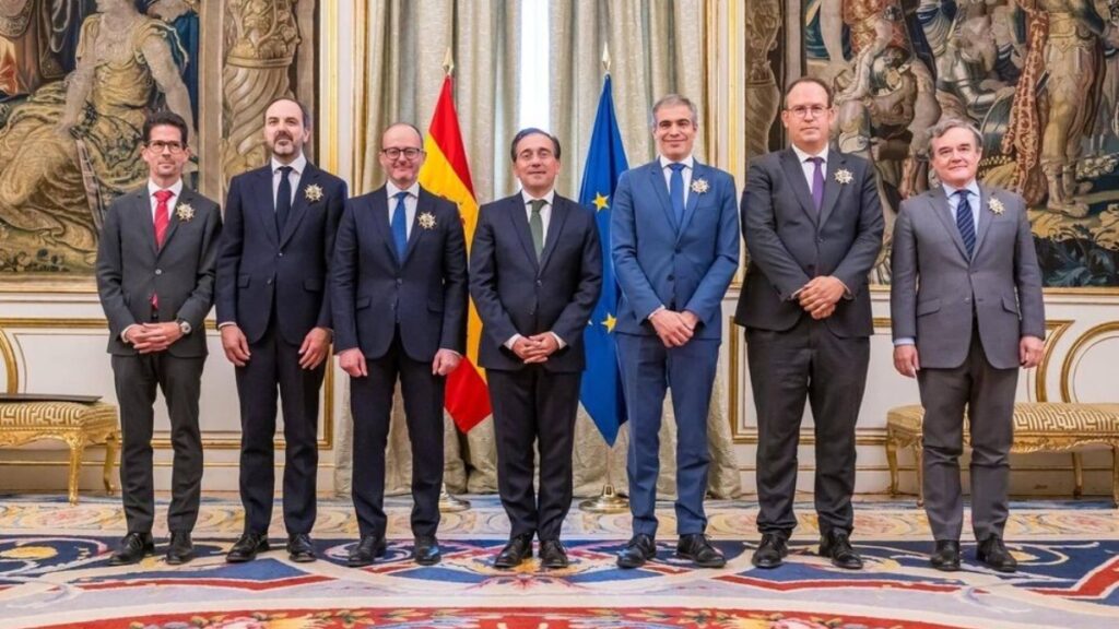 La imposición de la encomienda de Isabel la Católica al núcleo duro de Albares se llevó a cabo el 17 de julio con el mismo secretismo que ha rodeado toda la negociación del texto. Los condecorados fueron el secretario de Estado de Asuntos Exteriores, Diego Martínez Belío; el secretario de Estado para la UE, Fernando Sampedro; el director del Gabinete del ministro, Sergio Cuesta; el director general de Política Exterior y de Seguridad, Alberto Ucelay; el secretario general para la UE, Carlos Moreno; y el representante permanente de España ante la UE, Marcos Alonso.
