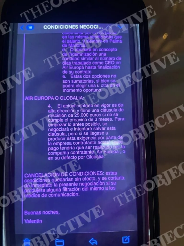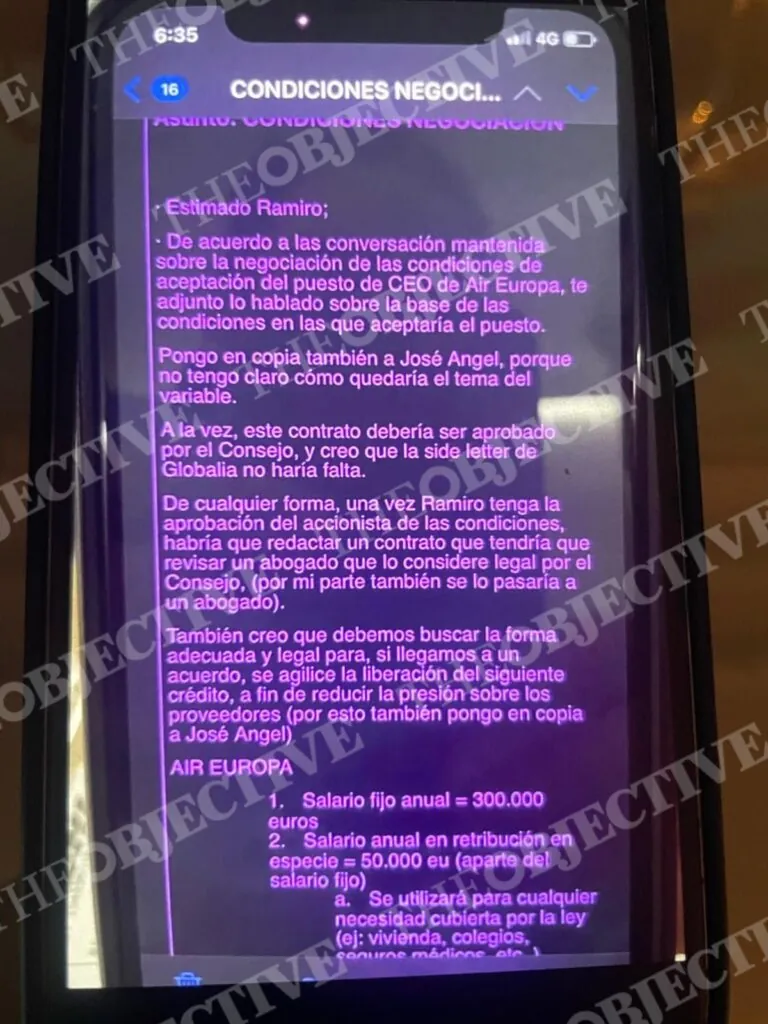 El correo electrónico de Valentín Lago a Ramiro Campos, jefe de los Servicios Jurídicos de Globalia, establece las condiciones del nuevo contrato para el CEO de Air Europa, que incluía un salario fijo anual de 300.000 euros, una retribución adicional de 50.000 euros en especie y un salario variable ligado a la fusión entre Air Europa e Iberia. Además, el contrato especificaba que el nombramiento de Lago debía ser aprobado por el Consejo de Administración de la empresa. Este correo, fechado poco después de la reunión en casa de Ábalos, revela cómo se gestionó el proceso de nombramiento y cómo la SEPI, a través de su intermediación, logró imponer una condición para liberar el segundo pago de los fondos: la aceptación de Lago como nuevo CEO, con la vinculación del pago a la consecución de la fusión de Air Europa con Iberia.