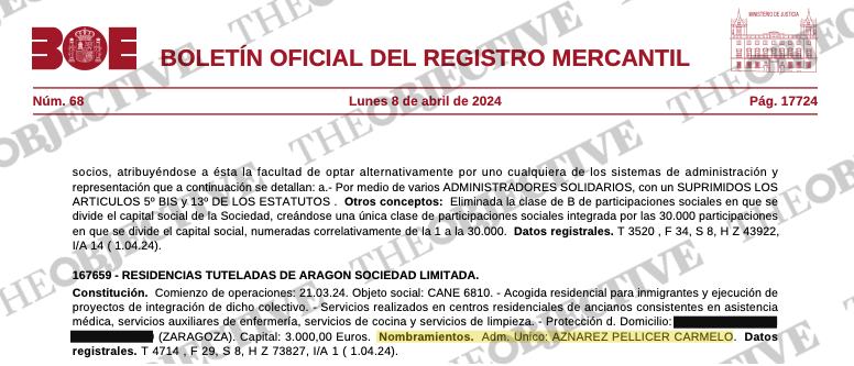 La empresa tiene su sede social a las afueras de Zaragoza. El inicio de las operaciones tiene lugar el 21 de marzo del año pasado. Este diario no ha podido constatar documentalmente que haya recibido contratos públicos para el alojamiento de inmigrantes ni de la Administración pública aragonesa ni tampoco del Gobierno central.