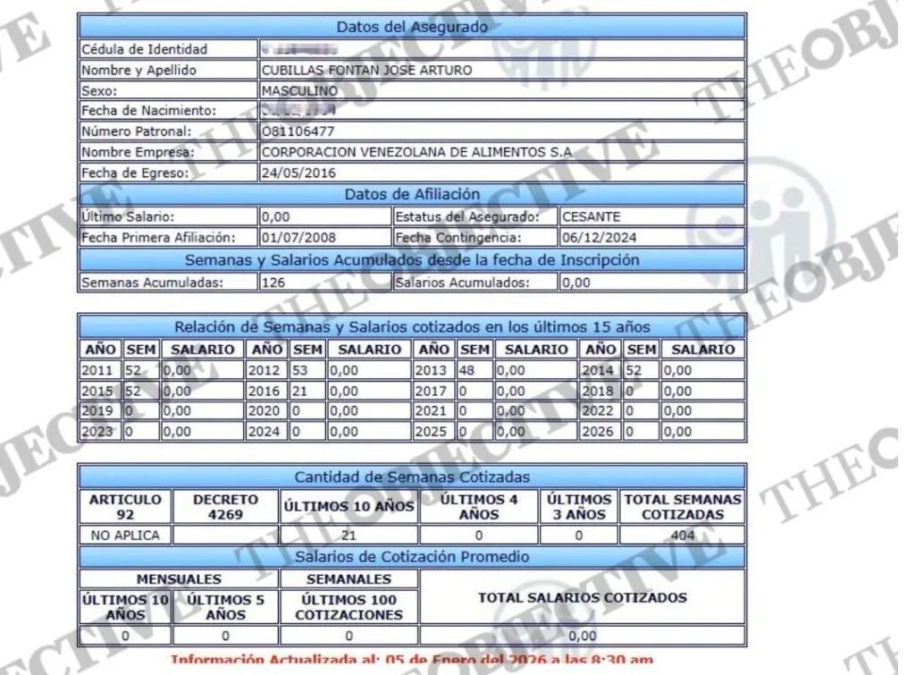 El recorrido de Arturo Cubillas Fontán es más complejo y exige mayor precisión. Los registros administrativos confirman su vinculación laboral con la Corporación Venezolana de Alimentos (CVAL), empresa pública dependiente del área agraria, pero también fijan un dato clave: egreso formal en 2016.