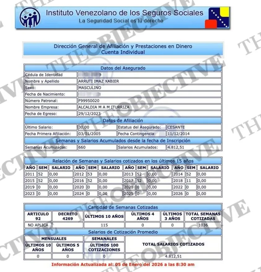 El caso más claro es el de Xabier Arruti Imaz, considerado durante años uno de los principales referentes de la estructura etarra en Venezuela. Los registros del IVSS consultados por THE OBJECTIVE lo sitúan como asegurado desde enero de 2005, con una trayectoria laboral continuada en empresas y administraciones públicas, entre ellas Gas Comunal, compañía estatal del sector energético y vinculada a PDVSA, y posteriormente una alcaldía del Estado Falcón.