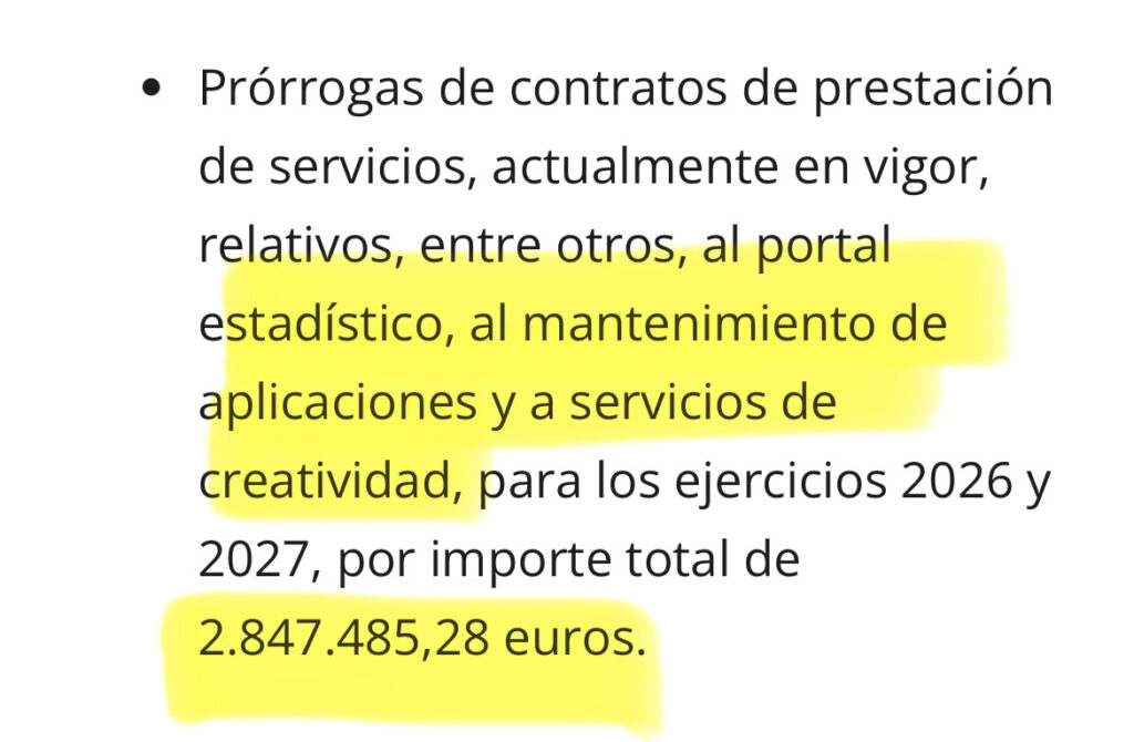 –El mismo Ministerio de Hacienda prorroga un contrato de servicios del portal estadístico, mantenimiento de aplicaciones y «servicios de creatividad» de la Delegación del Gobierno contra la Violencia de Género por importe de 2.847.485 euros. ¿Creatividad?