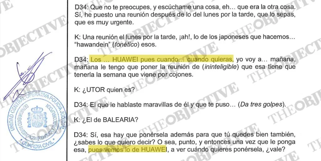 El 18 de noviembre de 2020, Koldo dejó constancia en su grabadora de una conversación telefónica con uno de los responsables de organizar la agenda de Ábalos. El objetivo de la charla era programar una reunión con los «japoneses» de Huawei. Pero tras ese aparente despiste del asesor del ministro, Koldo conocía perfectamente que se trataba de un encargo directo de la compañía china.