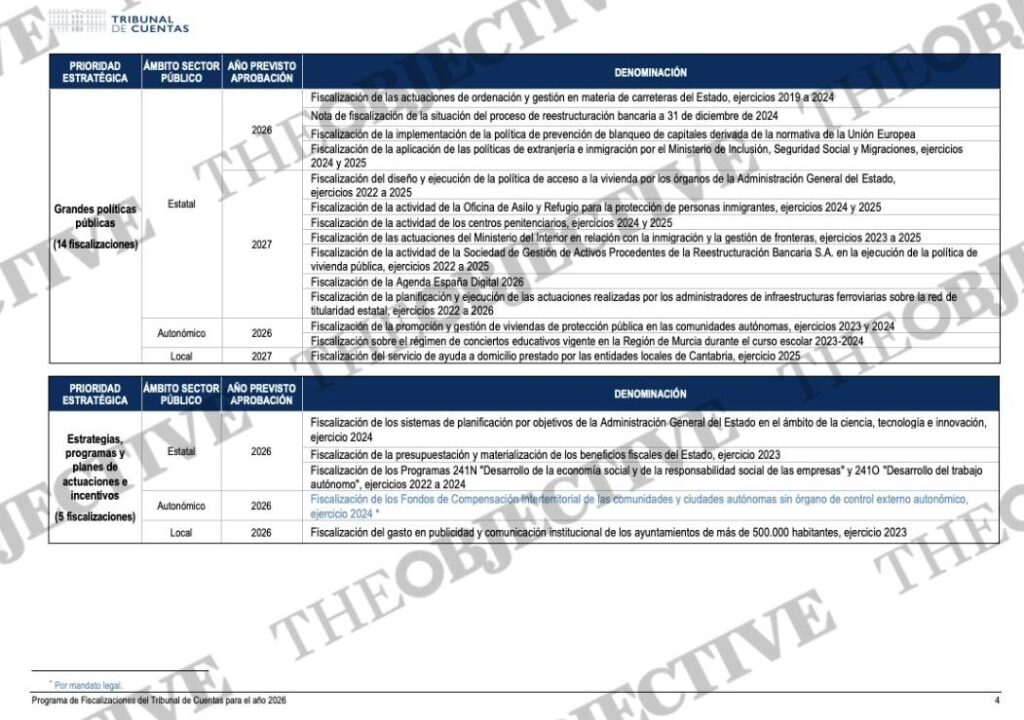 El organismo fiscalizador independiente ha incluido en su Programa de Fiscalizaciones de 2026, analizado por THE OBJECTIVE, una auditoría específica sobre la planificación y ejecución de las actuaciones en la red ferroviaria que afecta a ADIF, con un periodo de análisis que abarca desde 2022 hasta 2026. El trabajo se desarrollará a lo largo de 2026 y está previsto que sus conclusiones se publiquen en 2027, según el calendario oficial del Tribunal.