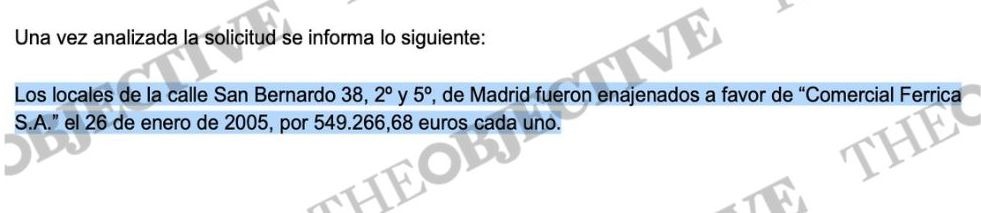 La sociedad Comercial Ferrica S.A. adquirió dos plantas del edificio que acabaron en la familia política de Sánchez