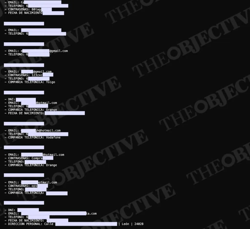 Entre la información y datos personales filtrados hay desde números de teléfono y direcciones de email hasta DNIs y direcciones físicas. Pero también hay contraseñas vinculadas a esos correos electrónicos, por lo que los expertos que ya revisan esta filtración creen que la información podría provenir de un ataque masivo anterior.