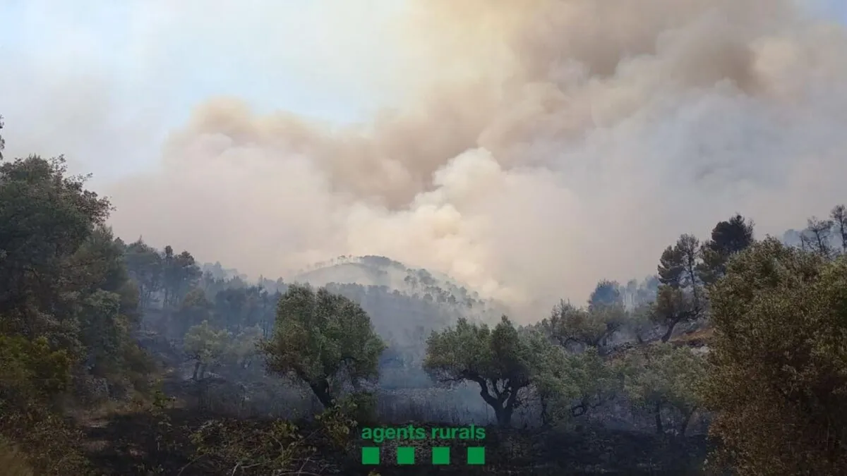 El fuego se ha extendido en focos secundarios y los bomberos han tenido que pedir el corte de la carretera TV-7333 entre la Fatarella y Vilalba dels Arcs.