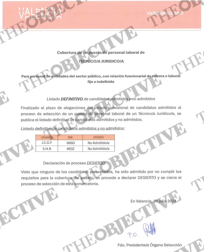 THE OBJECTIVE ha solicitado al Ayuntamiento de Valencia información detallada sobre los procesos de Visit Valencia, pero al cierre de esta edición, el consistorio no había ofrecido respuesta alguna.